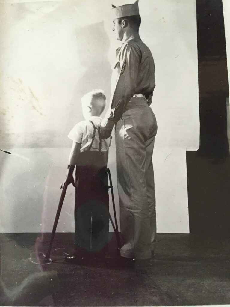 Because my dad couldn't. He was infected with polio at age 4, years before Salk changed the world with his vaccine. My father died last year of complications from influenza. Vaccines matter. This photo is of my father and his father, taken by military photographers and used to recruit men and women into service, to gain the best medical care for their polio stricken children.